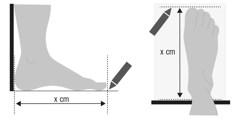 Ponieważ stopy nieco puchną w ciągu dnia, zalecamy mierzyć je wieczorem lub we wczesnych godzinach popołudniowych. Zawsze mierz obie stopy – często różnią się długością. Aby uzyskać dokładniejszy wynik, najlepiej poprosić kogoś o pomoc. Aby określić długość stopy, przyklej kartkę papieru taśmą do podłogi przy ścianie lub futrynie drzwi – tak, aby się nie przesuwała podczas pomiaru. Stań boso lub w cienkich skarpetkach, piętą opartą o ścianę, na kartce papieru. Stań wygodnie i patrz prosto przed siebie. Druga osoba niech teraz obrysuje kontur Twojej stopy. Ważne, aby trzymać ołówek pionowo – czyli pod kątem 90 stopni. Powtórz ten sam proces dla drugiej stopy. Następnie zmierz długość obu stóp za pomocą linijki lub miarki – od pięty do najdłuższego palca. Na podstawie długości większej stopy, skorzystaj z tabeli poniżej, aby sprawdzić, który rozmiar obuwia odpowiada Twojemu pomiarowi lub jest do niego najbliższy. Jeśli Twój wynik wypada między dwoma rozmiarami, zawsze wybierz ten większy.